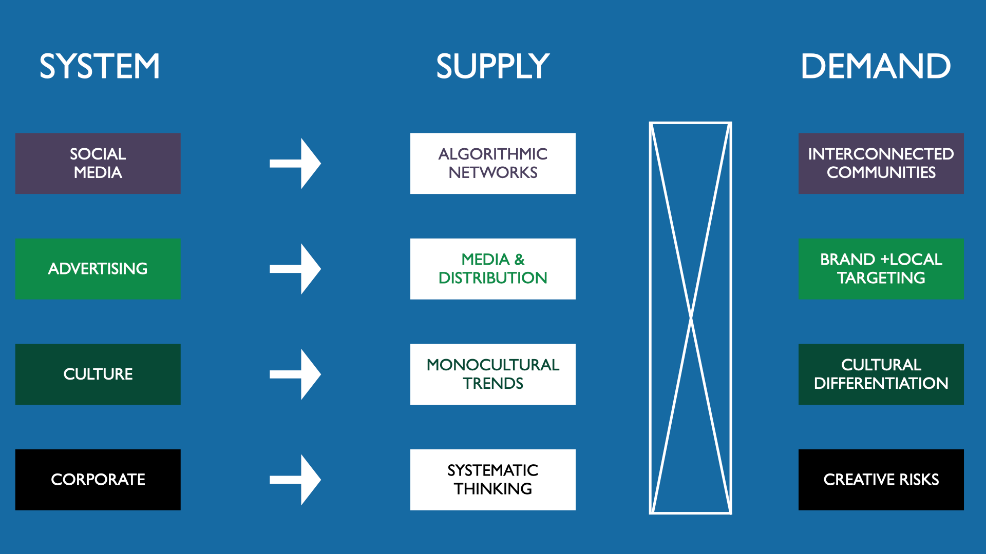 Culture - Most brands are simply engaging with whatever cultural trend becomes a template or format. The contentification of culture happens every day. Engaging with that fragment of XYZ is not enough. What brands are actually seeking is cultural differentiation, which means doing more than following monocultural trends on and off social media.